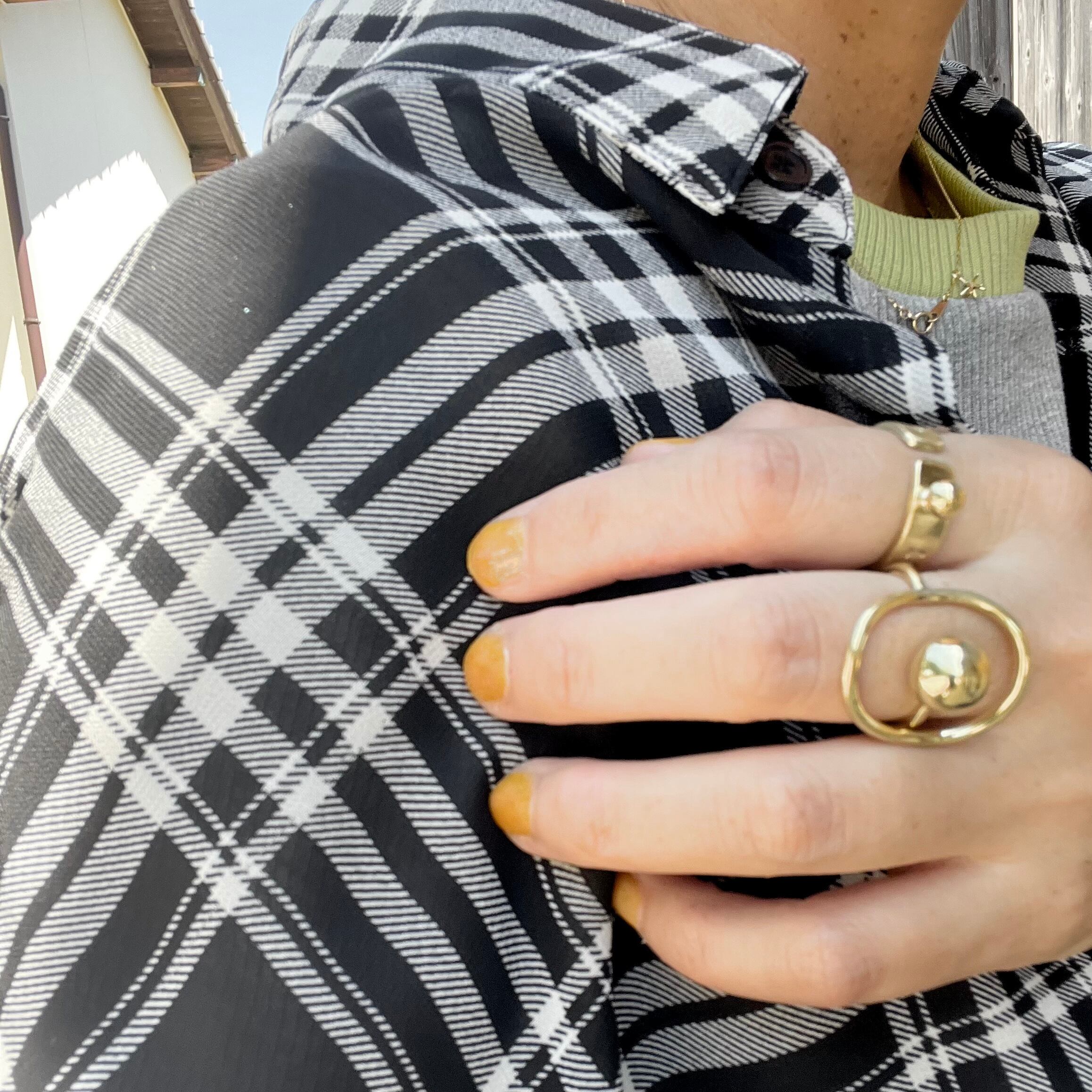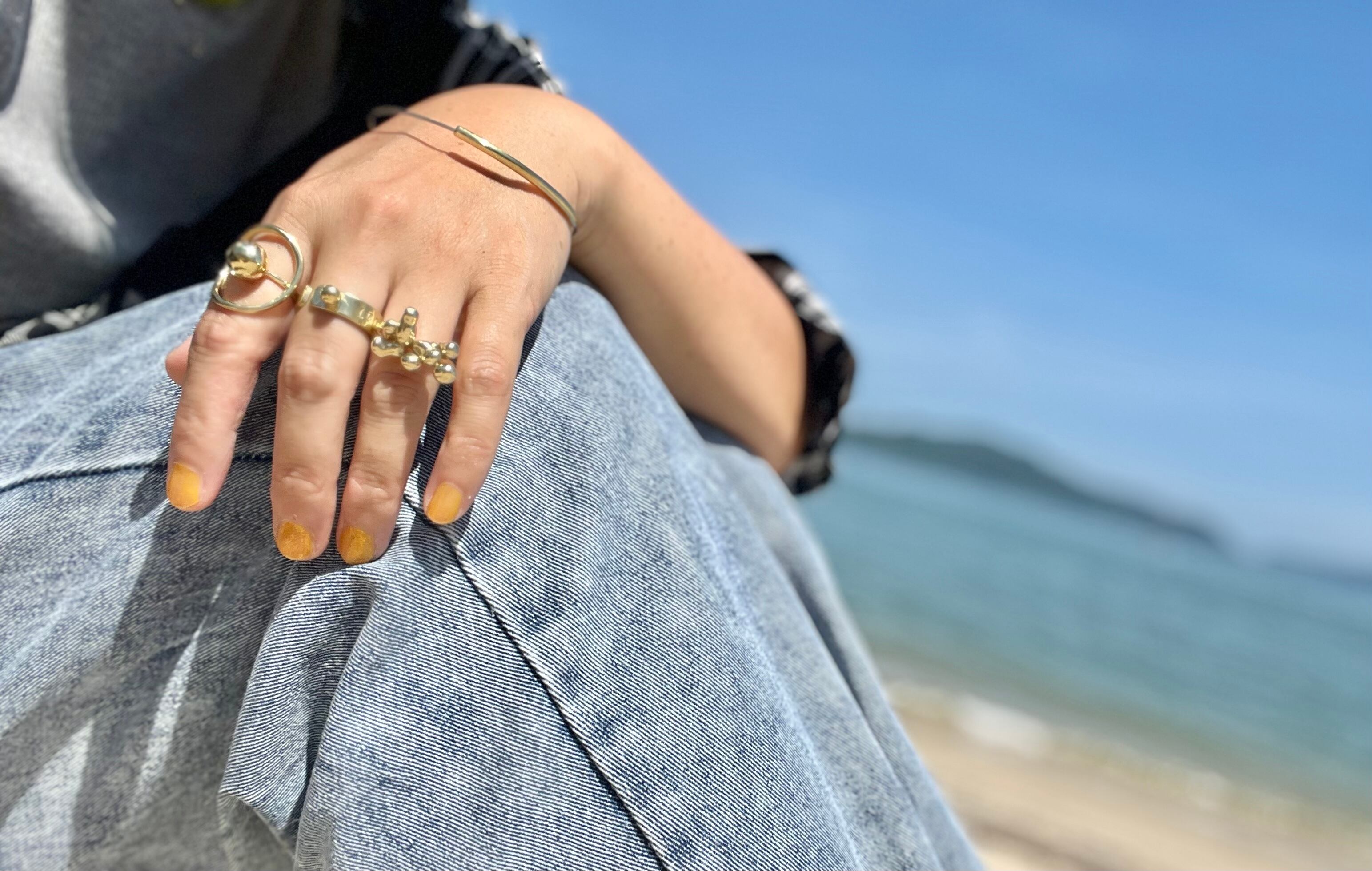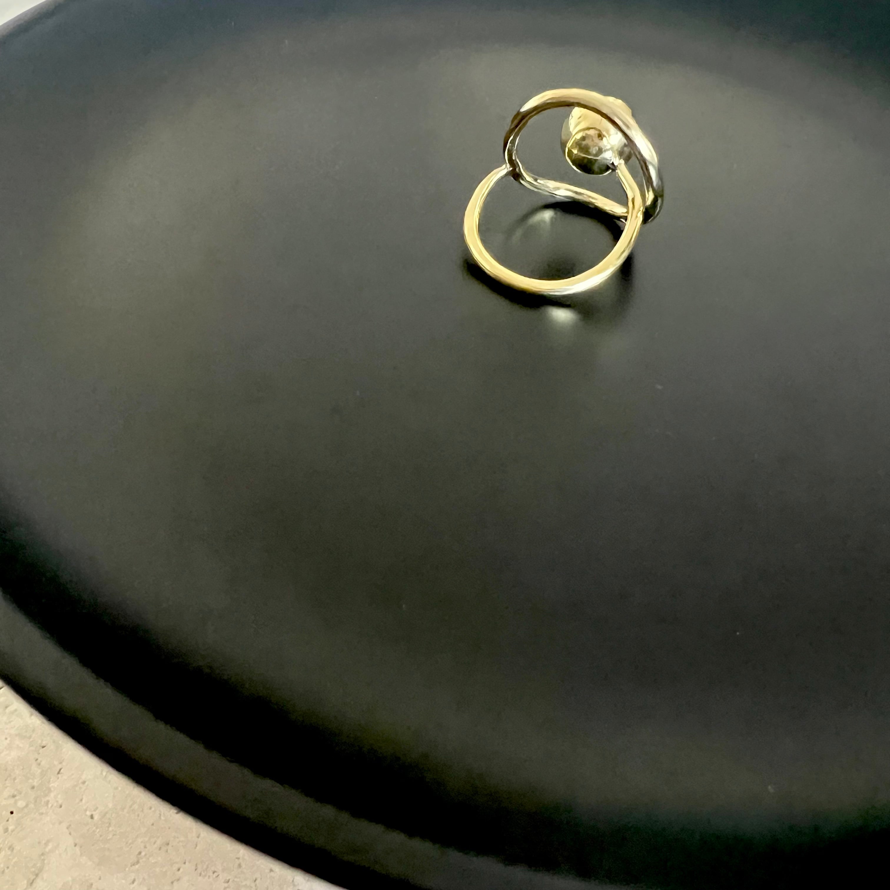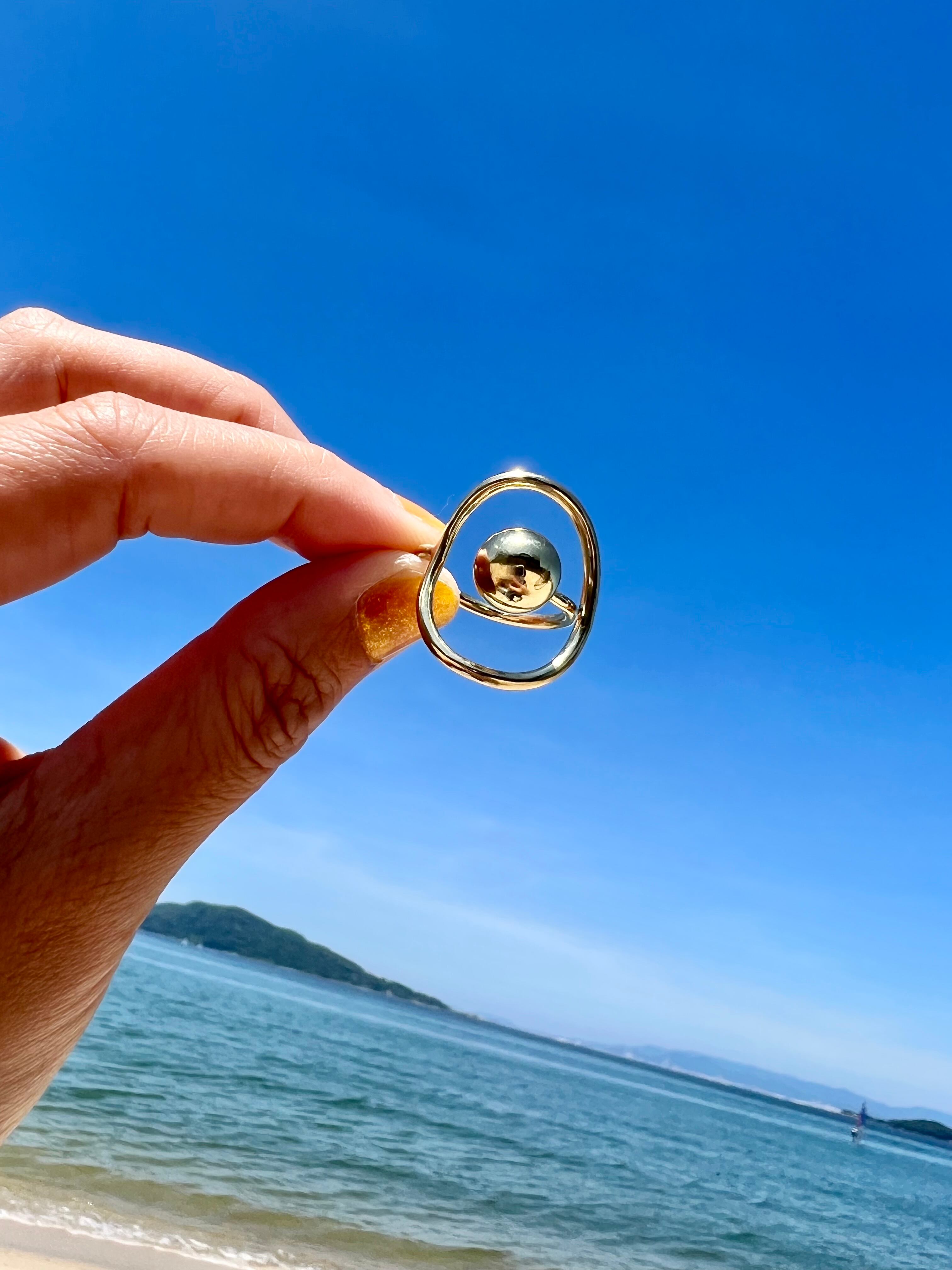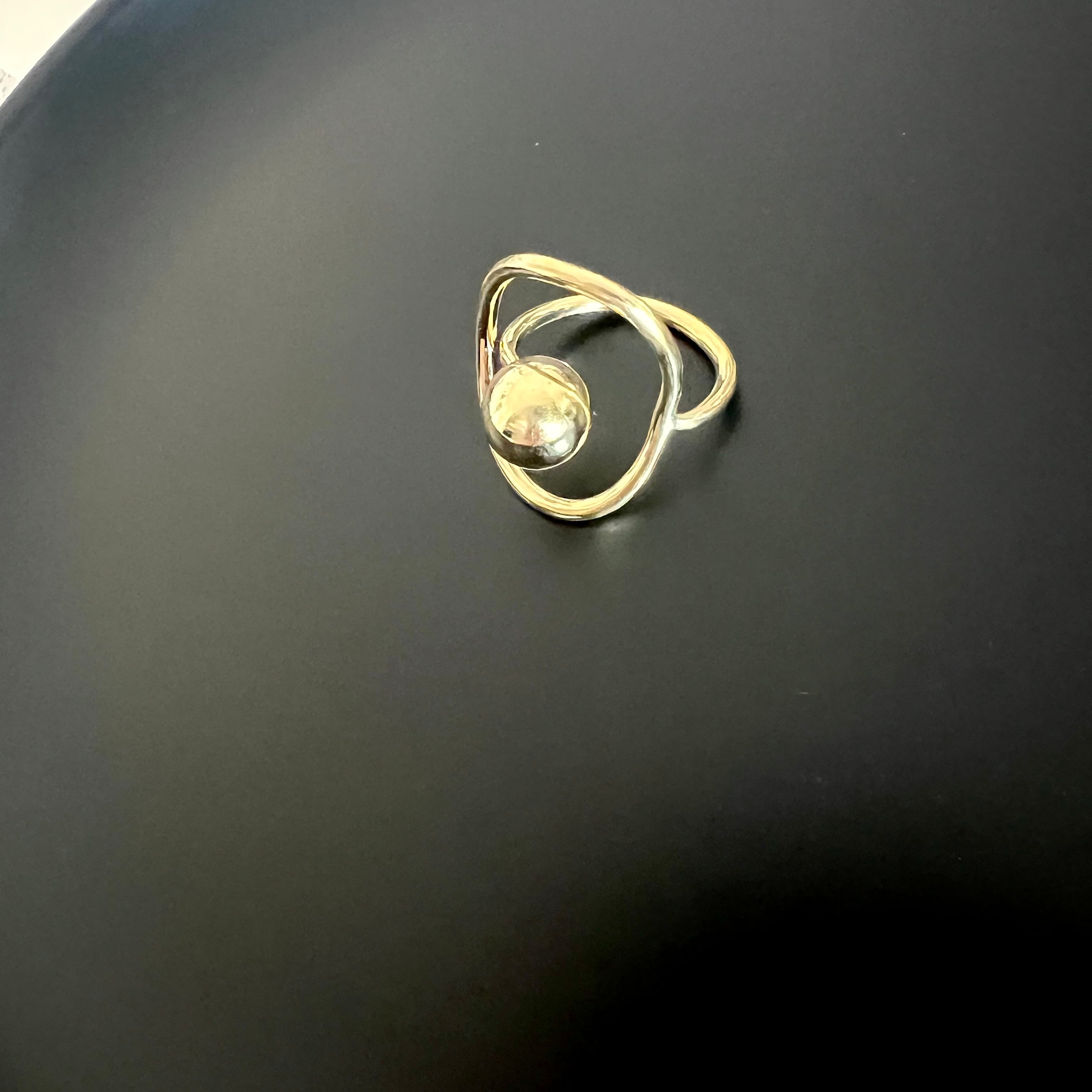 真鍮わっかと、真鍮球をくるっとリングにしました。