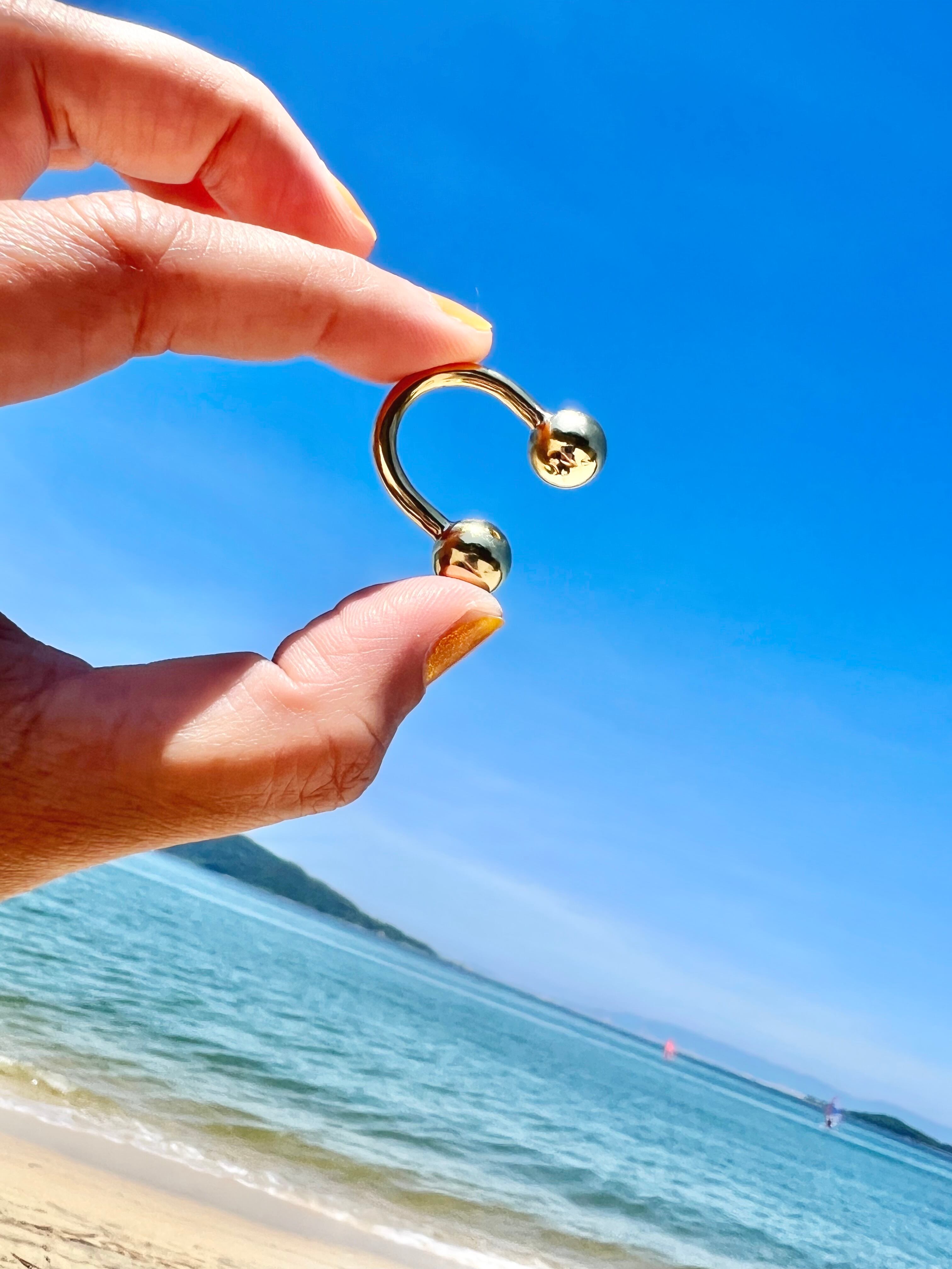 指と指の隙間に真鍮球がくっついているようなデザイン。