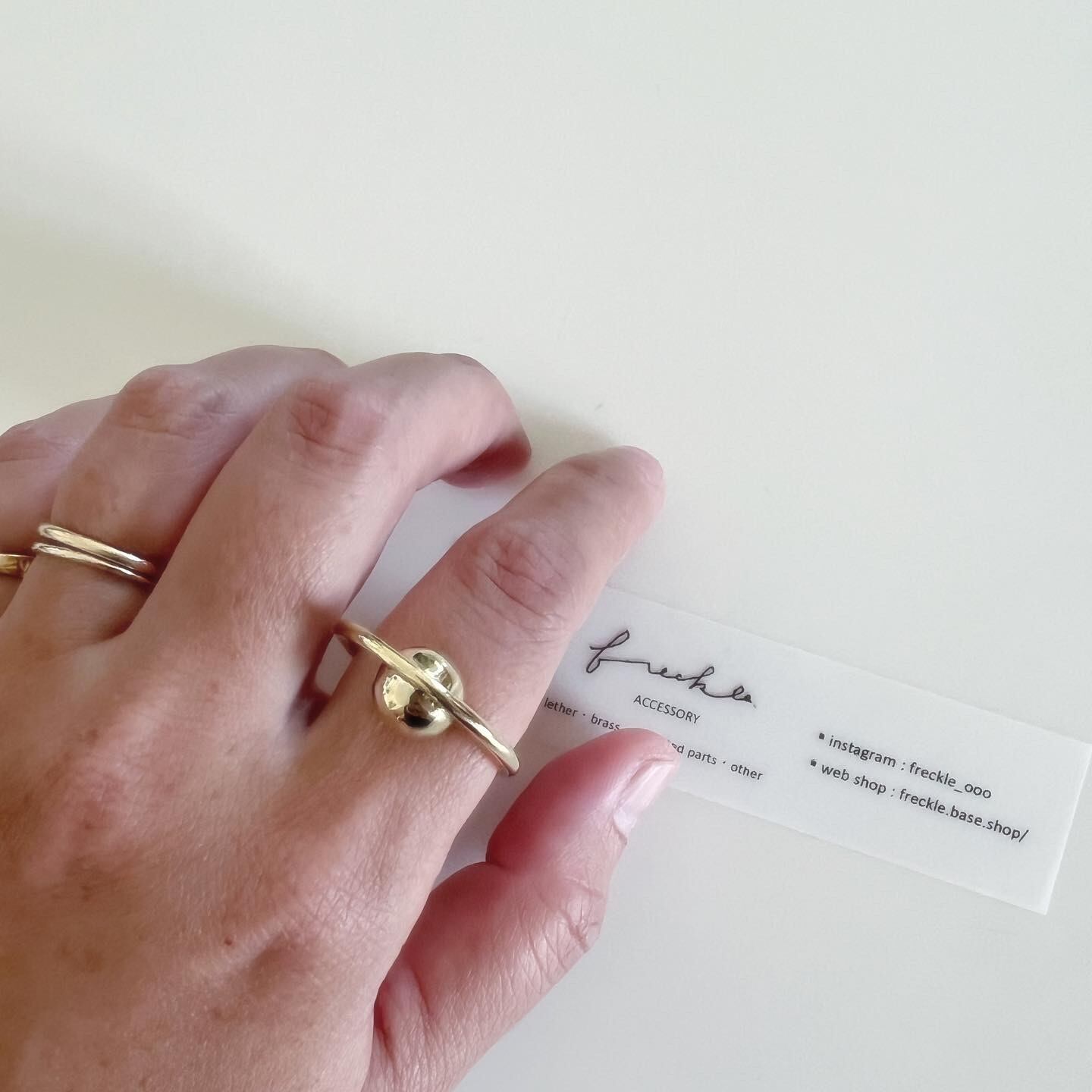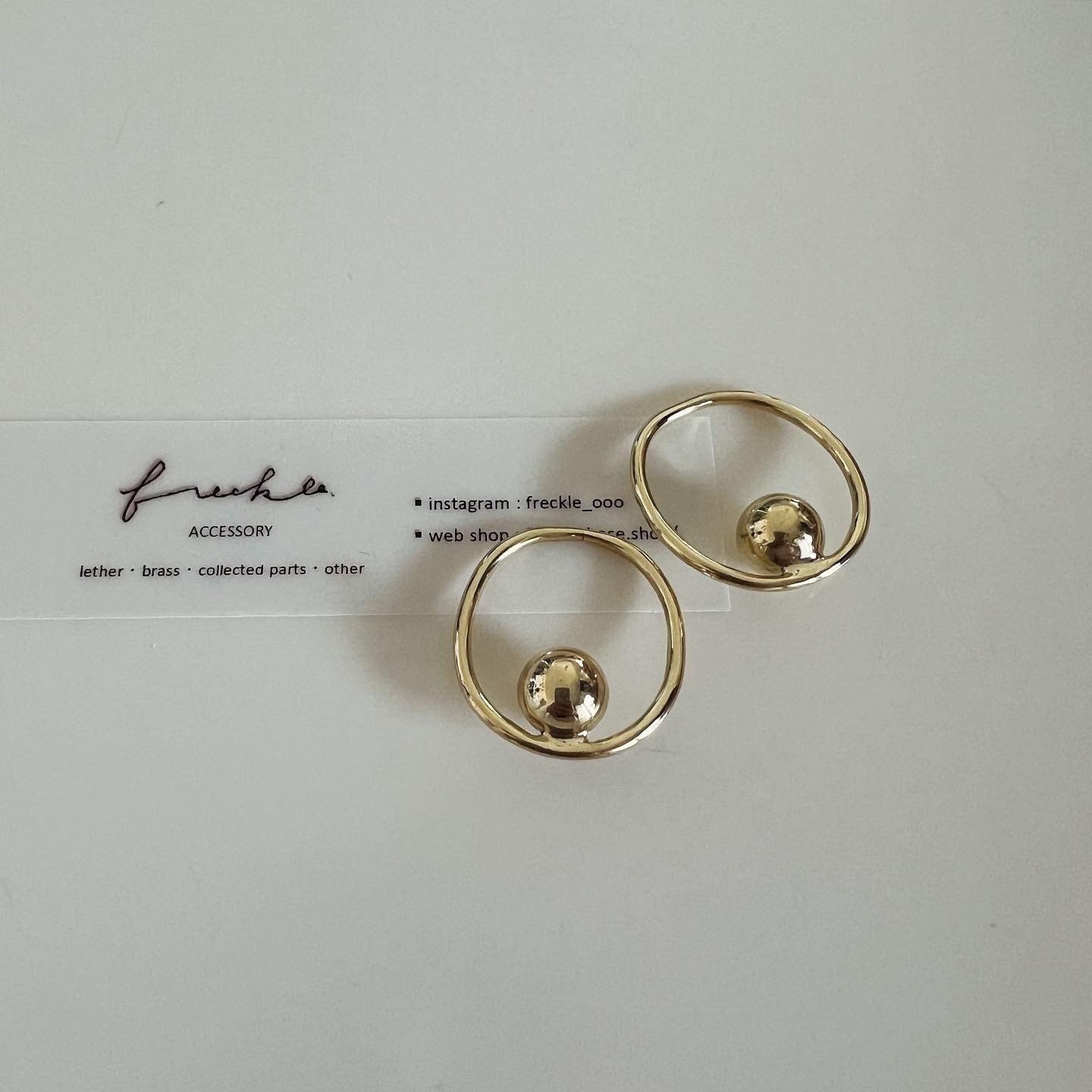 真鍮球をリングの中につけたデザインです。